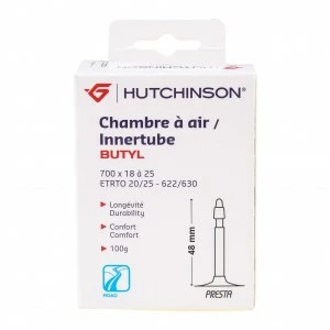 Chambre à air Hutchinson de vélo de route en 700×20 à 25 en butyl d’épaisseur de 0.9mm avec valve de 48 , 60 ou 80mm pour toutes kes hauteurs de jante .