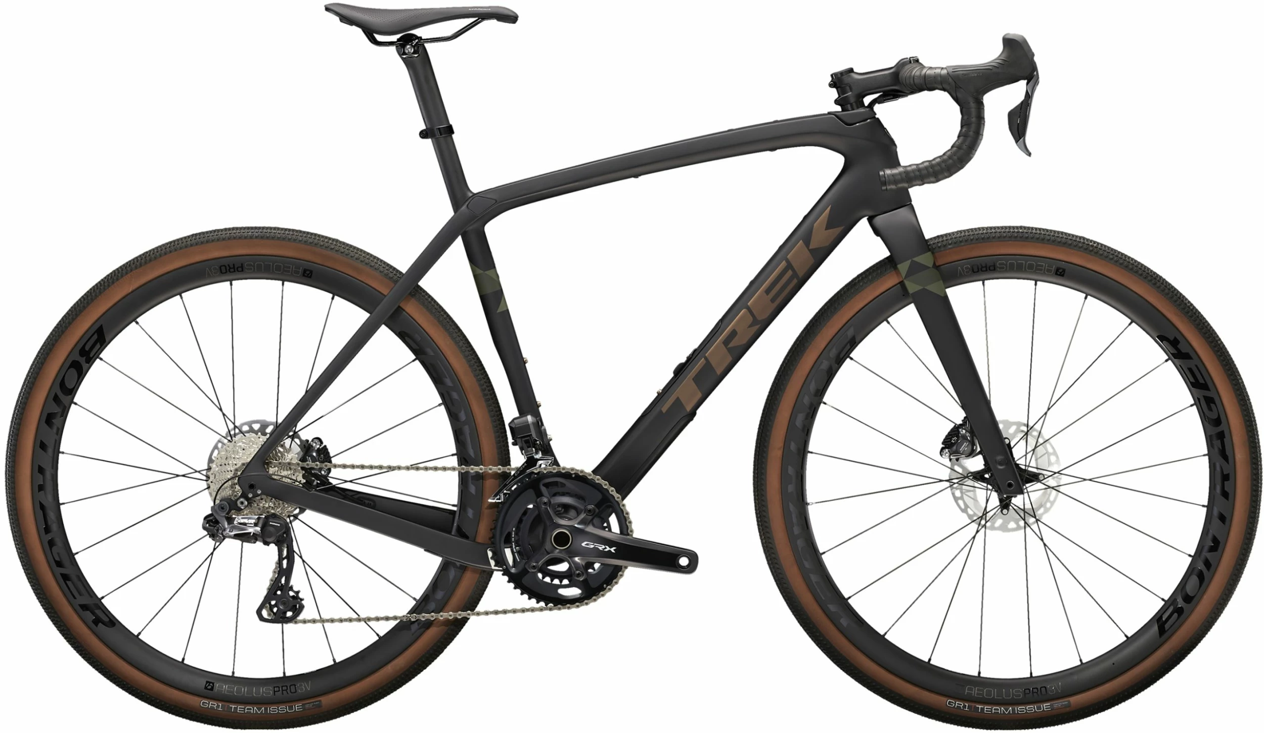 Roues | Roue avant > Bontrager Aeolus Pro 3, Carbone OCLV, Tubeless Ready, largeur de jante de 25 mm, axe traversant 100×12 mm ; Roue arrière > Bontrager Aeolus Pro 3, Carbone OCLV, Tubeless Ready, largeur de jante de 25 mm, corps de roue libre Shimano 11/12 vitesses, axe traversant 142×12 mm ; |